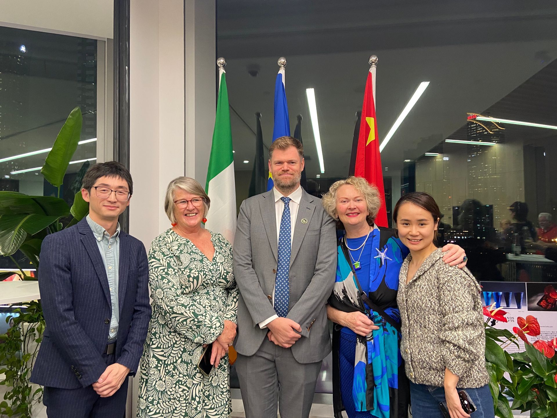 and host Bingbing Dai - HCIE at the reception in Shanghai Irish Consulate for 10 Hands Oct 2024